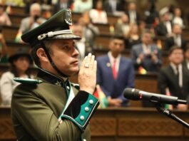 En reemplazo de Ismael Téllez, Jhonny Aguilera, ex Comandante de la Policía Boliviana, fue posesionado este sábado (01/Abr) como nuevo Viceministro de Régimen Interior y Policía. En su discurso mencionó que se centrarán en brindar seguridad a la sociedad, dado que, en sus palabras, “es la sensación razonada de paz”.