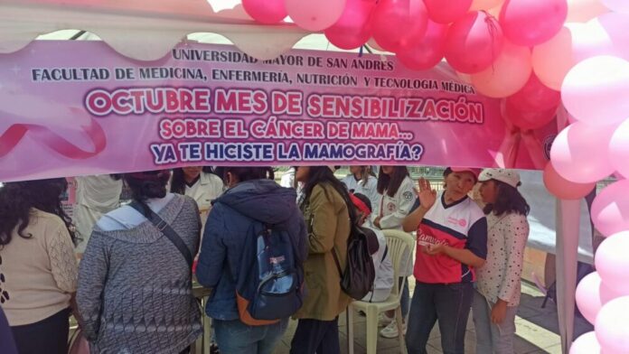 La Dirección de Salud y Deportes de La Paz anunció la realización de la “Feria de Salud Multidisciplinaria” este sábado 12 de octubre en el atrio de la UMSA, desde las 09:00 hasta las 13:00, con atención médica gratuita y énfasis en la prevención del cáncer de mama. La actividad forma parte de las acciones por el “Octubre Rosa”.