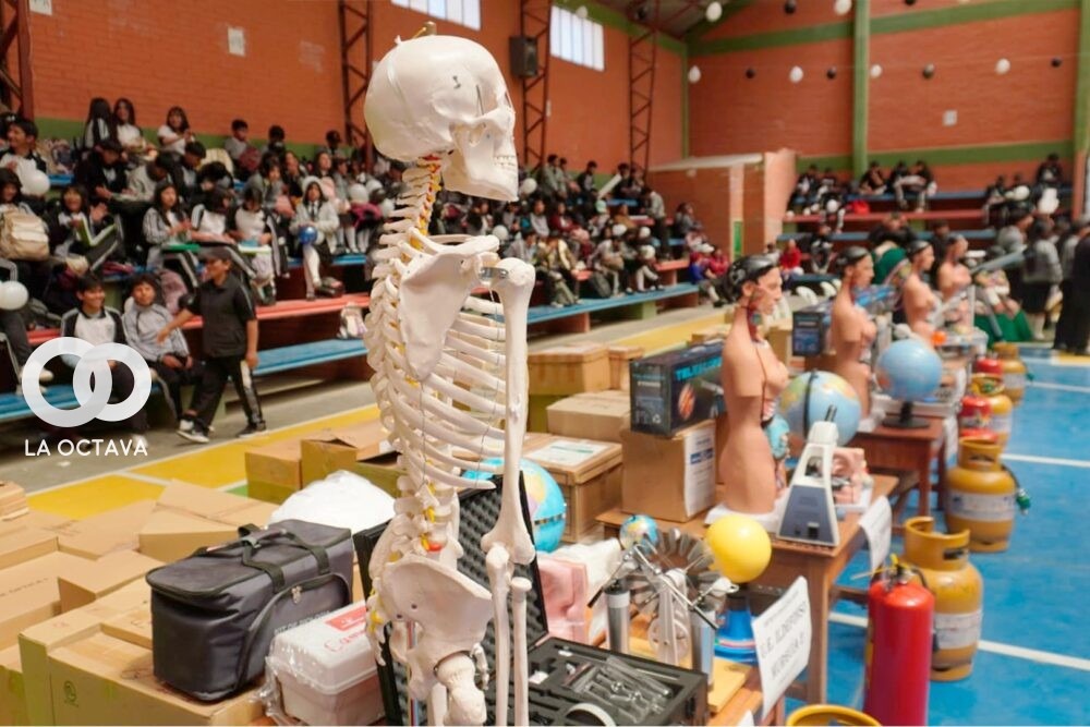 Con el objetivo de fortalecer el aprendizaje y la seguridad estudiantil, el Ministerio de Educación entregó este jueves 12 kits de laboratorios de Química, Física, Biología y Geografía, además de equipos de computación y cámaras de vigilancia a unidades educativas del departamento de Oruro. La entrega beneficiará directamente a cuatro instituciones educativas de la región.
