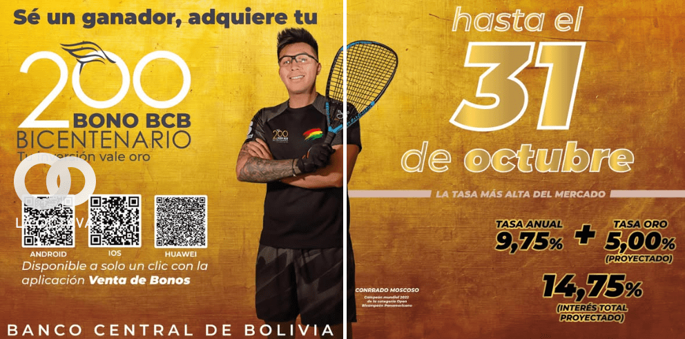 Banco Central de Bolivia (BCB) recordó que la venta del Bono BCB Bicentenario concluirá el 31 de octubre, tras cuatro meses de exitosa colocación que ya superó los Bs 520 millones. La entidad invitó a la población a aprovechar los últimos días de adquisición de este instrumento financiero, considerado seguro y altamente rentable.