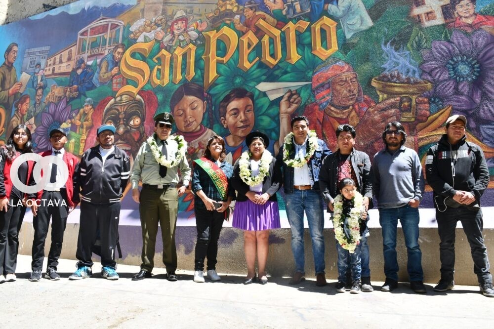 Ministerio de Culturas, Descolonización y Despatriarcalización entregó oficialmente el mural “Revalorización del Patrimonio Cultural Paceño”, una obra de 59 metros cuadrados que refleja la riqueza cultural, las tradiciones y la historia del barrio de San Pedro, en la ciudad de La Paz.