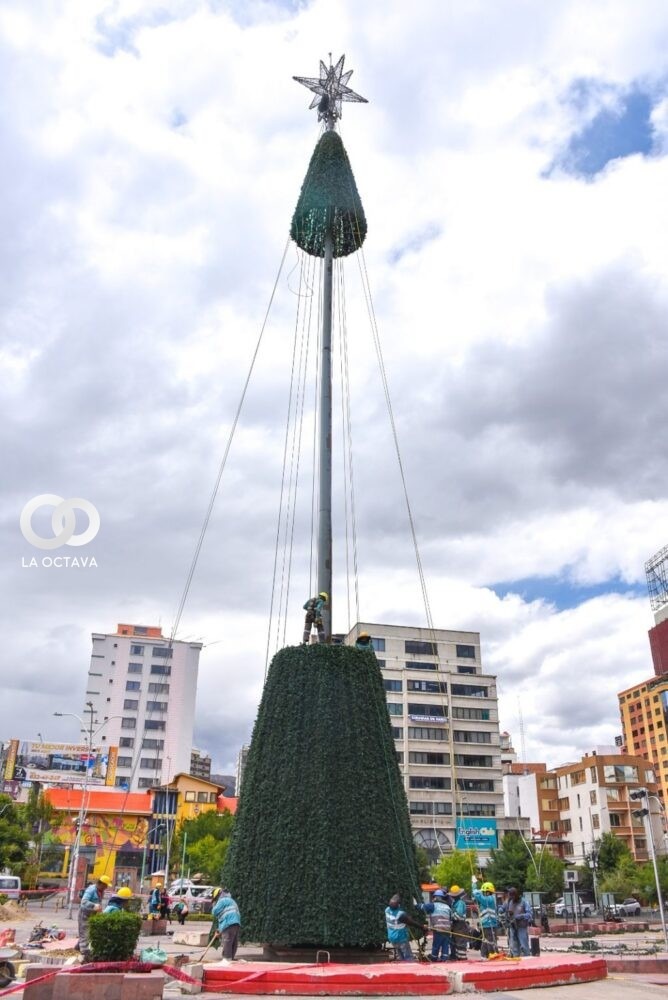 La Alcaldía de La Paz avanza en la construcción de uno de los montajes navideños más grandes del país, que incluirá un árbol de más de 30 metros de altura y 15 mil focos LED, además de un pesebre a escala humana que permitirá a los visitantes recorrer la “casa donde nació Jesús”. El proyecto contará con 19 espacios “instagrameables”, diseñados para fotografías y recorridos nocturnos en un circuito visualmente atractivo y familiar.