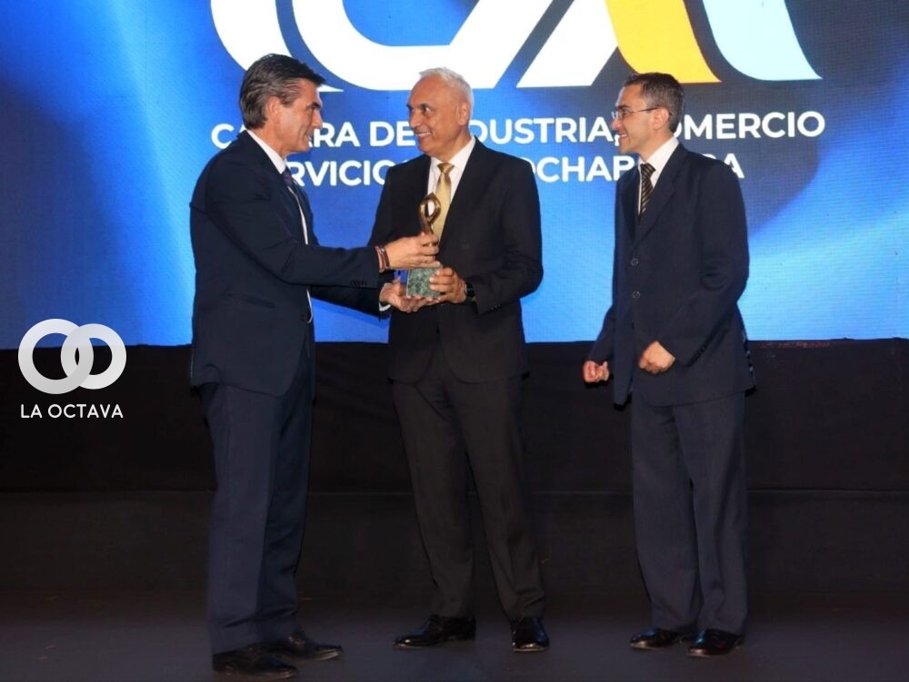 La Cámara de Industria, Comercio y Servicios de Cochabamba (ICAM) otorgó a SOBOCE el máximo reconocimiento de la institución, la estatuilla “Fusión”, por su aporte al desarrollo sostenible y la construcción del país. El galardón fue entregado por Rodrigo Paz, Presidente del Estado, a los ejecutivos de SOBOCE Vasili Kitaigorod y Ricardo Barrientos, durante la ceremonia en la que también asumió el nuevo directorio de la ICAM para la gestión 2025–2026.