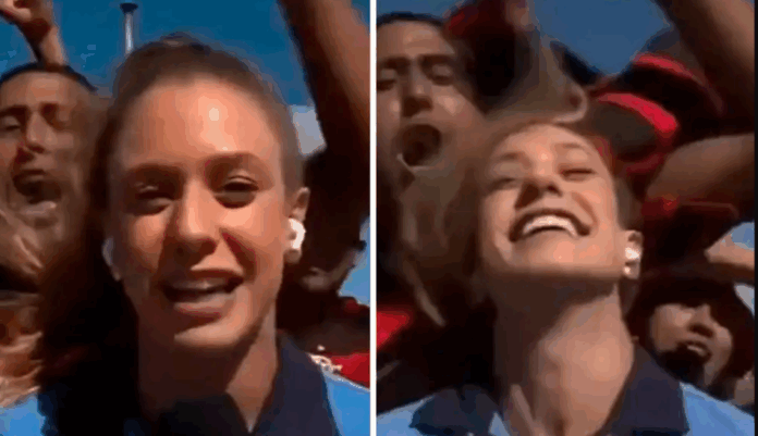 La cronista de Globo fue víctima de tirones de cabello mientras transmitía la despedida del Flamengo rumbo a la final de la Copa Libertadores.