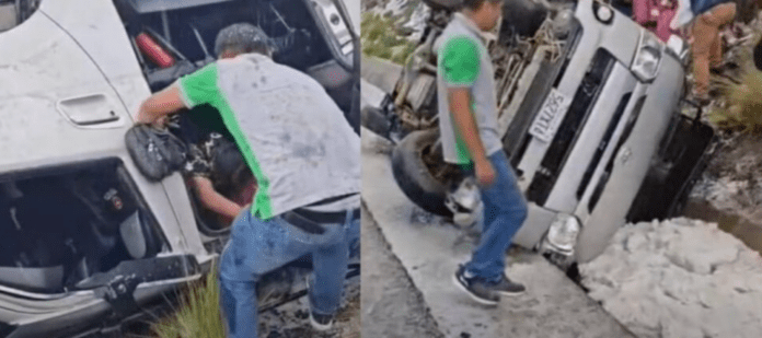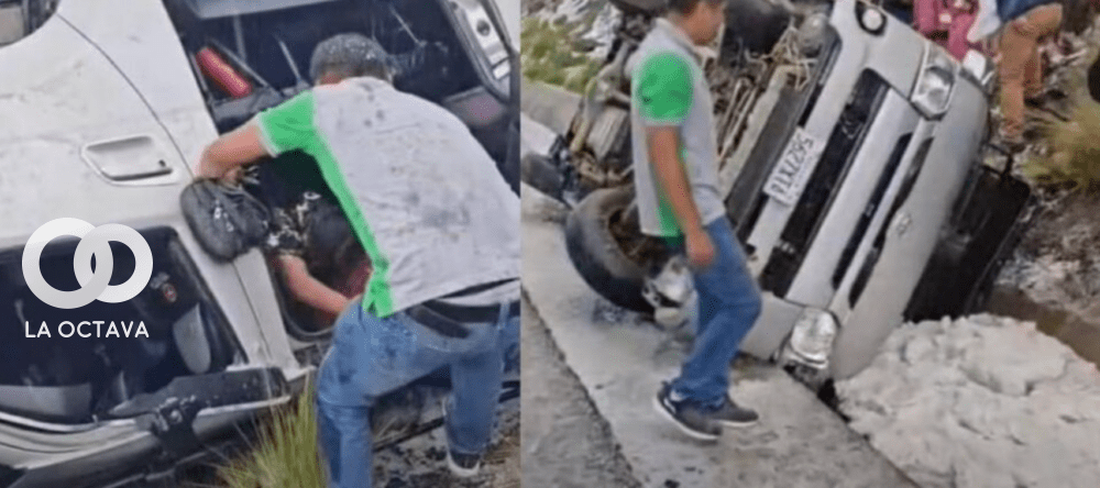 Varias personas resultaron con lesiones leves y fueron atendidas en el lugar. Imágenes del incidente muestran el vehículo volcado a un costado de la carretera, mientras los pasajeros esperaban ayuda. Las condiciones climáticas complicaron la situación, ya que se registraban lluvias intensas y granizada en la zona.