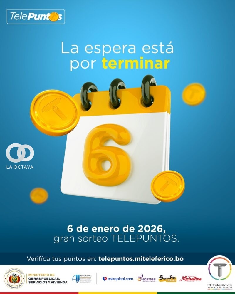 La Empresa Estatal de Transporte por Cable Mi Teleférico realizará este martes 6 de enero el sorteo de la Promoción Empresarial “Telepuntos: Viaja, recarga y gana”, dirigido a premiar la fidelidad de sus usuarios. El evento se llevará a cabo a las 10:30 en la Estación Central de la Línea Roja, con la presencia de un representante de la Autoridad del Juego y un Notario de Fe Pública, asegurando transparencia en el proceso.