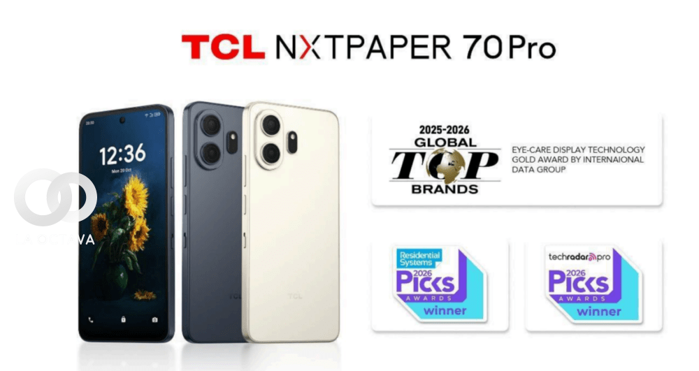TCL anunció que el smartphone TCL NXTPAPER 70 Pro fue galardonado con el Premio Oro en Tecnología de Pantallas para el Cuidado de la Vista en los Global Top Brands Awards 2025–2026, realizados durante el CES 2026. El dispositivo también recibió los CES Picks 2026 y otros reconocimientos internacionales, reafirmando el liderazgo de la marca en tecnología de pantallas enfocadas en el bienestar visual.