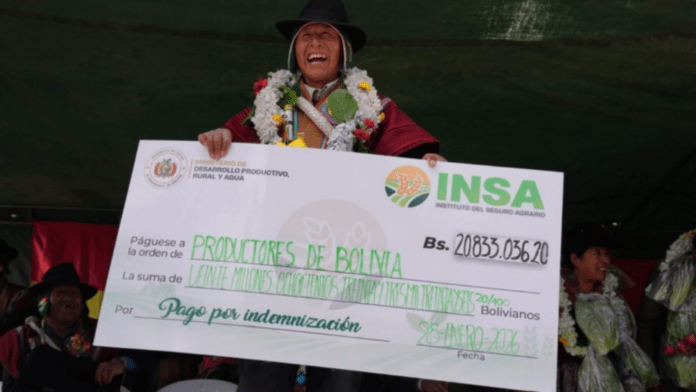 El gobierno boliviano comenzó el miércoles 28 de enero de 2026 el pago de indemnizaciones del Seguro Agrario “Minka”, beneficiando a 42.935 familias que sufrieron pérdidas durante la campaña agrícola 2024-2025 por sequías, heladas y granizadas. Los desembolsos se realizan en 95 municipios de siete departamentos, con una inversión aproximada de 20 millones de bolivianos, según el Ministerio de Desarrollo Productivo, Rural y Agua (MDPRyA).