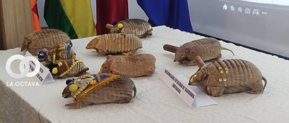 La Policía Forestal y de Preservación del Medio Ambiente (Pofoma) de Oruro decomisó nueve quirquinchos disecados que estaban siendo utilizados como matracas durante el recorrido del convite orureño. Cuatro pertenecían a la Morenada Central y cinco a la Morenada Cocanis, todos sin registro legal, informó Douglas Espinoza, Director de Pofoma.