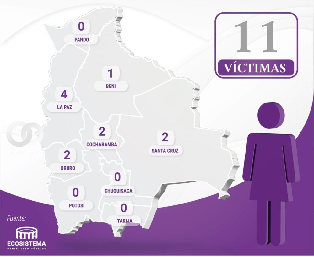 En lo que va de 2026, al menos 11 mujeres han perdido la vida por feminicidio en Bolivia, según reportes oficiales, afectando a familias en La Paz, Santa Cruz, Cochabamba, Oruro y Beni. Los casos presentan patrones recurrentes de violencia extrema, muchas veces vinculados al consumo de alcohol y al entorno familiar o de pareja.