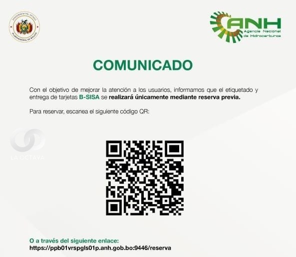 La Agencia Nacional de Hidrocarburos (ANH) informó que el etiquetado y la entrega de la tarjeta B-SISA se realizarán mediante reserva previa a través de un código QR o un enlace habilitado. La solicitud debe gestionarse con 24 horas de anticipación, entre las 08:00 y 16:00, con el objetivo de mejorar la atención y evitar filas.