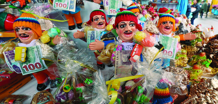 La Alasita, que en aymara significa “cómprame”, se celebra cada 24 de enero y consiste en adquirir miniaturas de bienes como casas, autos, dinero y comida, que según la tradición el Ekeko hará realidad durante el año. La festividad fue declarada Patrimonio Cultural Inmaterial de la Humanidad por la Unesco y también genera un importante movimiento económico en La Paz y El Alto.