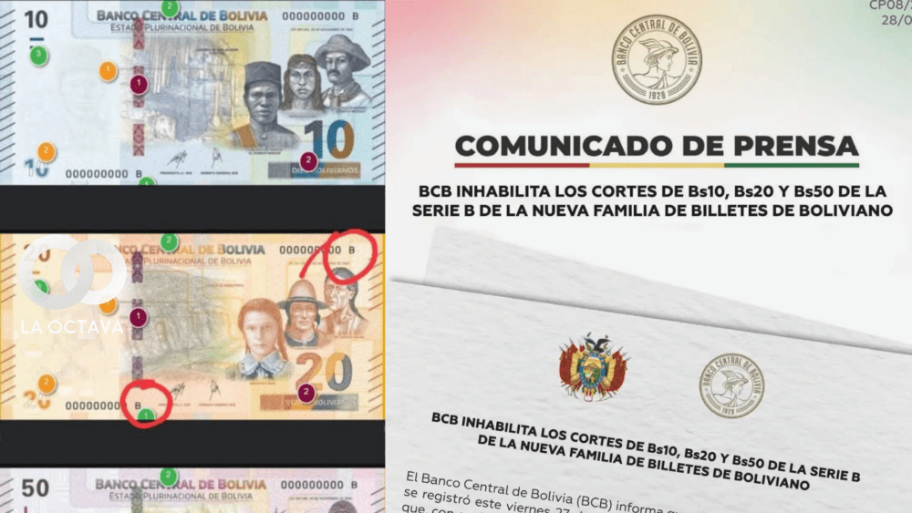 Banco Central de Bolivia (BCB) informó que, tras el siniestro aéreo ocurrido el viernes 27 de febrero en la ciudad de El Alto, se determinó la inhabilitación inmediata de los billetes de Bs 10, Bs 20 y Bs 50 correspondientes a la Serie B de la Nueva Familia de Billetes de Boliviano.