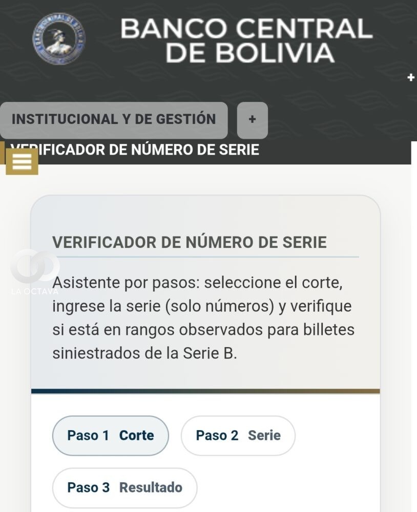 Banco Central de Bolivia (BCB) habilitó en su portal web un verificador de números de serie para que la población pueda identificar billetes invalidados de la Serie B en los cortes de Bs 10, Bs 20 y Bs 50.