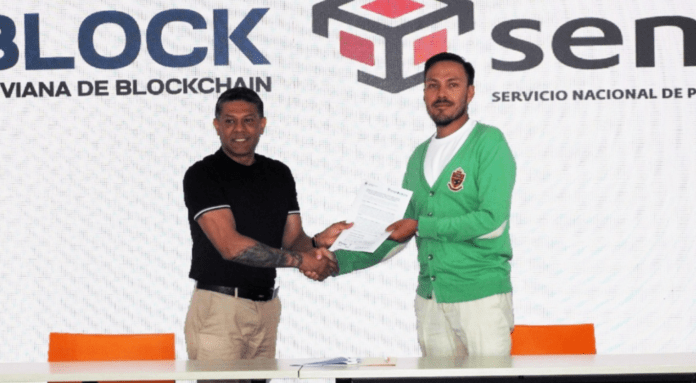 El Servicio Nacional de Propiedad Intelectual (SENAPI) firmó un convenio de cooperación con la Cámara Boliviana de Blockchain (CABLOCK) para promover el intercambio de conocimientos, capacitación y orientación sobre tecnologías emergentes, especialmente blockchain, en la gestión de la propiedad intelectual.