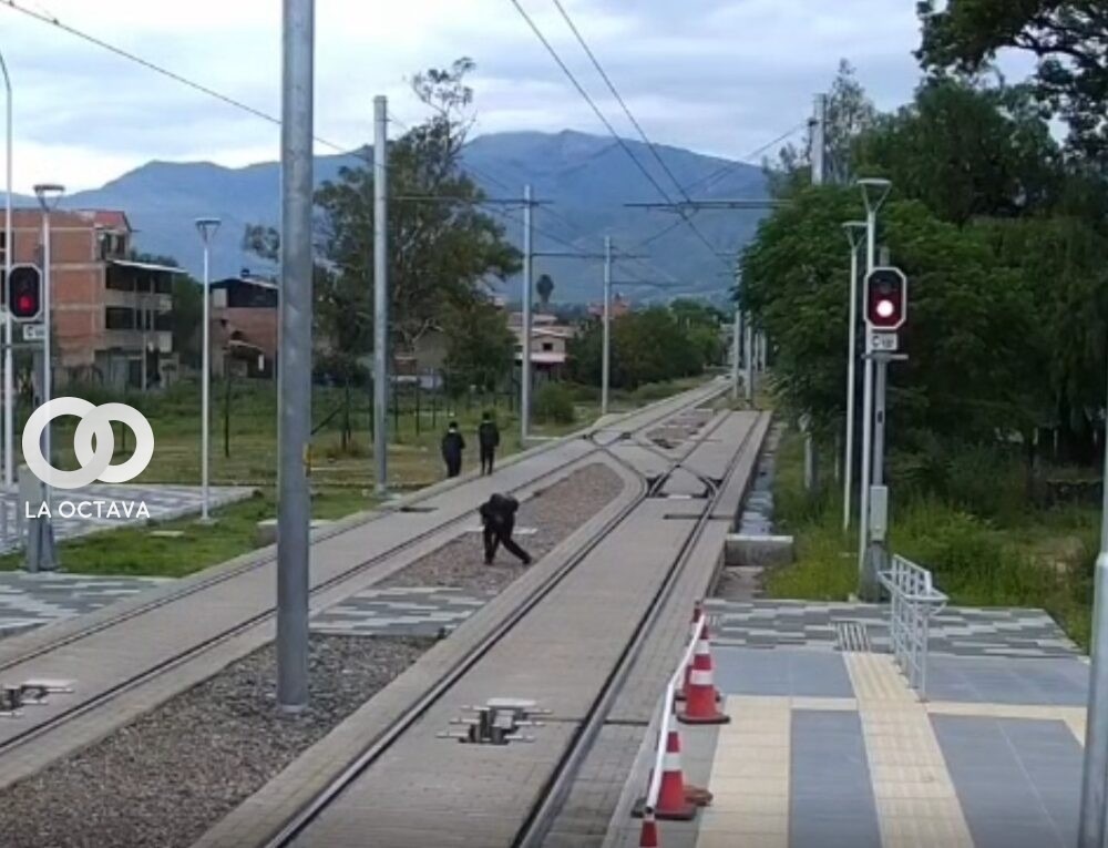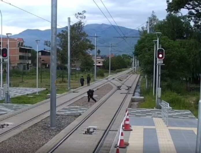 Cámaras de seguridad de Mi Tren Metropolitano en Cochabamba registraron a estudiantes arrojando piedras sobre los rieles de la línea Verde, una acción que podría causar descarrilamiento y poner en riesgo a pasajeros y personal operativo.