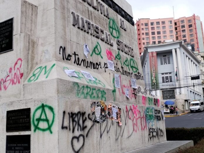 Este lunes 9 de marzo, Guilherme Tortato, Secretario Municipal de Infraestructura Pública de La Paz, cuestionó los daños registrados en el monumento al Mariscal Antonio José de Sucre, ubicado en la Plaza del Estudiante, tras las protestas por el Día Internacional de la Mujer. La autoridad señaló que el derecho a la protesta no debe implicar afectaciones al patrimonio urbano.