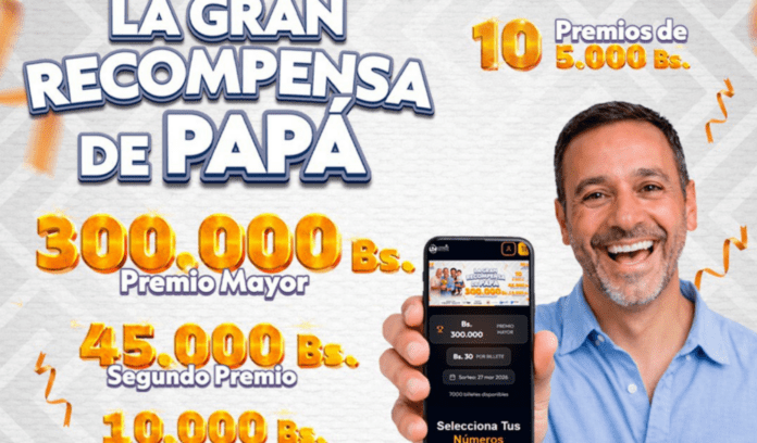 La Lotería Nacional de Beneficencia y Salubridad lanzó el sorteo “La Gran Recompensa de Papá”, una campaña destinada a homenajear a los padres bolivianos con importantes premios a nivel nacional. El premio mayor será de 300.000 bolivianos, acompañado de un segundo premio de Bs 45.000 y un tercer premio de Bs 10.000.