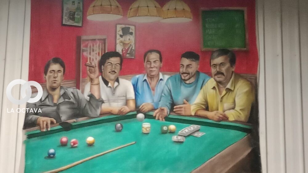 Durante los allanamientos en la zona del Urubó, las autoridades encontraron un mural que retrata al narcotraficante Sebastián Marset junto a otros capos del narcotráfico, como Pablo Escobar, Roberto Suárez Gómez y el personaje ficticio Tony Montana, reunidos alrededor de una mesa de billar.