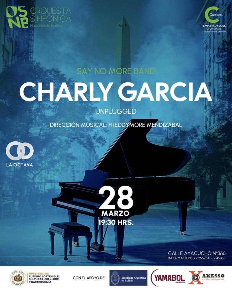 La Paz recibirá el concierto “Charly García – Unplugged”, homenaje acústico al músico argentino, dirigido por FreddyMore Mendizabal y la “SAY NO MORE BAND”. El evento incluye la interpretación completa del álbum Unplugged y piezas emblemáticas, y se realizará el sábado 28 de marzo de 2026 a las 19:30 en el Centro Sinfónico Nacional.
