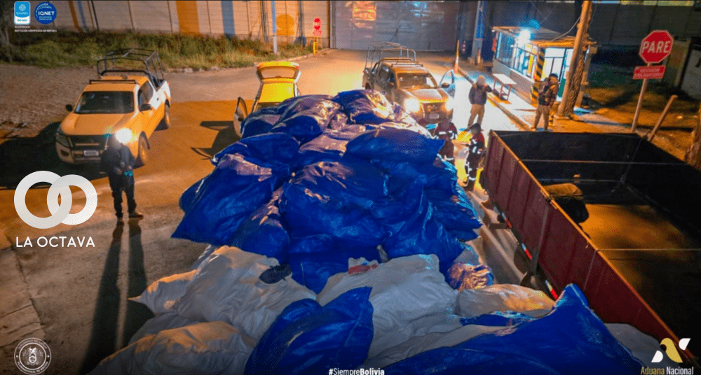 La Aduana Nacional, a través del Grupo de Reacción Inmediata Aduanera (GRIA), incautó dos camiones con placas chilenas que transportaban prendería usada en el puesto PIA de Achica Arriba, municipio de Viacha. Los conductores huyeron al momento de la intervención, dejando los vehículos abandonados.