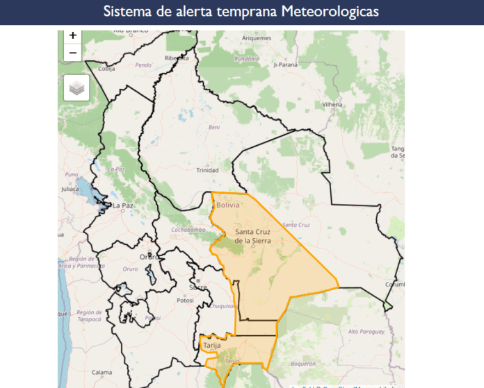 El fenómeno ingresará la madrugada del martes 7 de abril y se extenderá hasta la noche del viernes 10. En Santa Cruz afectará varias provincias, entre ellas Andrés Ibáñez, Warnes e Ichilo; en Tarija, a Cercado, Gran Chaco y otras; y en Chuquisaca, a Luis Calvo.