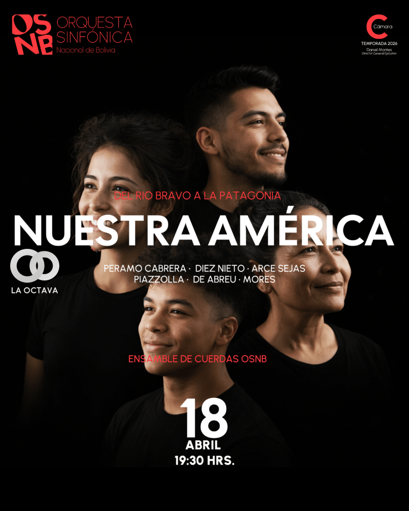 La Orquesta Sinfónica Nacional de Bolivia presentará este 18 de abril el concierto “Nuestra América: del Río Bravo a la Patagonia” en el Centro Sinfónico Nacional, a partir de las 19:30. La propuesta en formato de música de cámara busca destacar la riqueza y diversidad de compositores latinoamericanos.