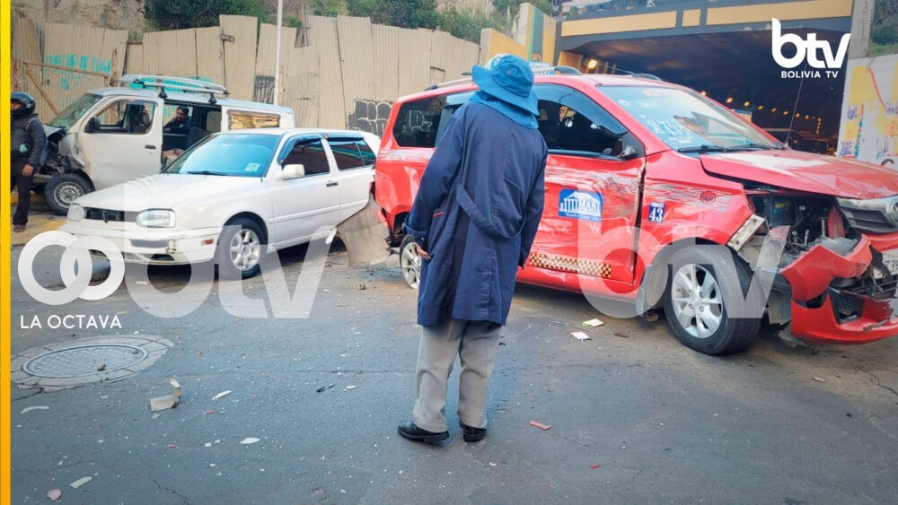 La tarde de este sábado 18 de abril, se registró un choque múltiple en la salida del túnel del Instituto Americano, en la zona de Sopocachi de la ciudad de La Paz, que involucró al menos a cuatro vehículos, entre trufis y minibuses, según reportes preliminares.