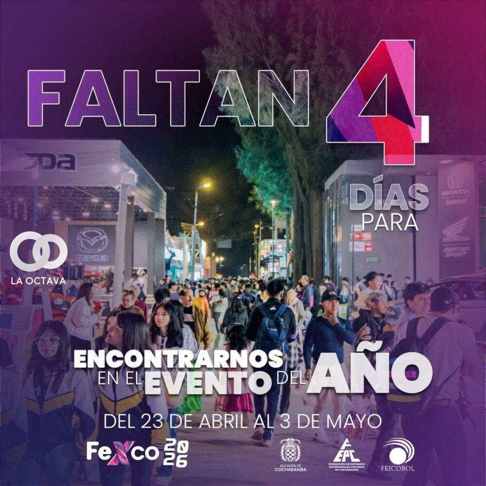 La Feria Exposición Internacional de Cochabamba (FEXCO) 2026 se realizará del 23 de abril al 3 de mayo en el recinto ferial de la laguna Alalay. El evento reunirá a más de 1.600 expositores nacionales e internacionales en una superficie de 60.000 metros cuadrados.