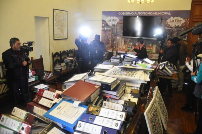 Este lunes 20 de abril, Gonzalo Barrientos, Director de Gobernabilidad del Gobierno Autónomo Municipal de La Paz, informó que la documentación entregada por el alcalde Iván Arias en el proceso de transición permanece en el Palacio Consistorial, donde la comisión de la nueva gestión continúa con su revisión. Según la autoridad edil aún no se ha concluido el análisis de la información.