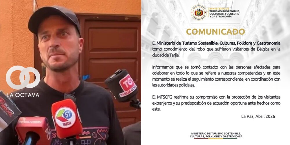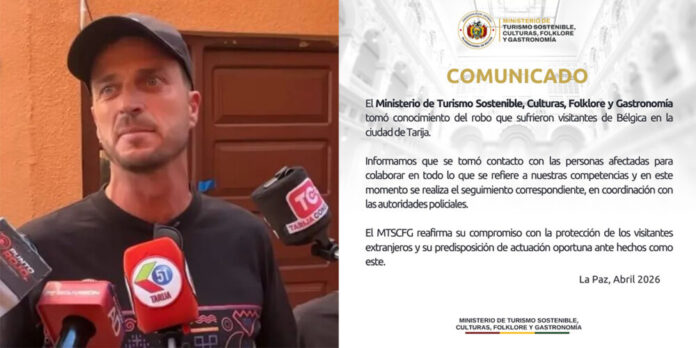 Este jueves 23 de abril, el Ministerio de Turismo Sostenible, Culturas, Folklore y Gastronomía informó que contactó a los turistas de Bélgica que fueron víctimas de un robo en la ciudad de Tarija, con el fin de brindarles asistencia y realizar el seguimiento del caso en coordinación con la Policía.